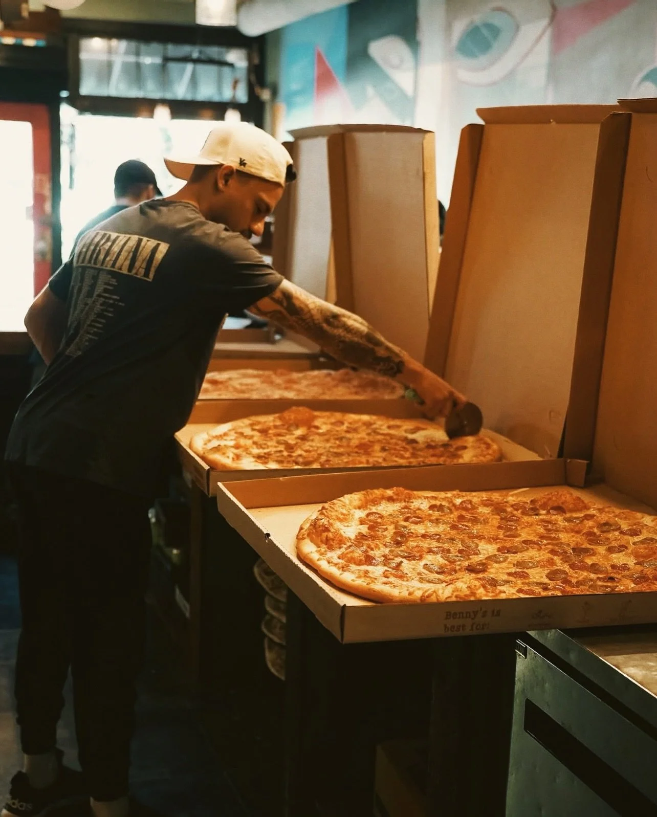 Benny’s was founded in Blacksburg VA. The college town put them on the map and they now offer giant 28" pizzas and “Virginia Jumbo Slice" at over 20 locations in Virginia, North Carolina, South Carolina, Pennsylvania, and West Virginia.